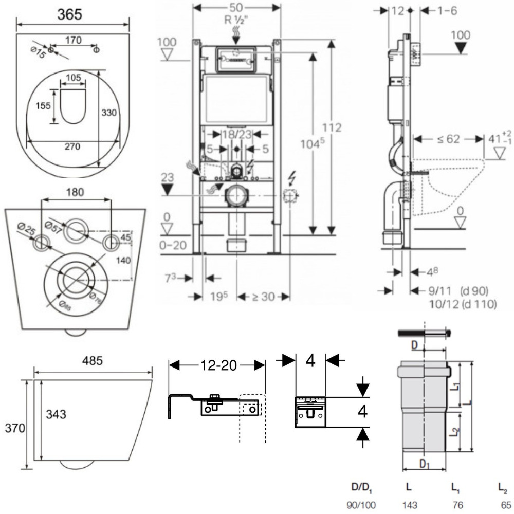 Geberit DUOFIXBasic pour toilettes suspendues, avec réservoir Delta (111.153.00.1) :