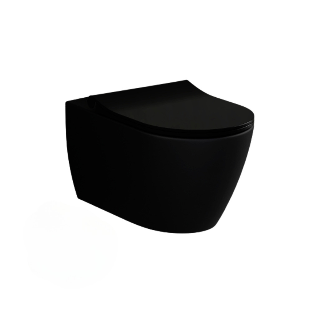 - LIVEA Bello Cuvette suspendue sans bride + Abattant frein de chute, Noir mat (BlackBello)
