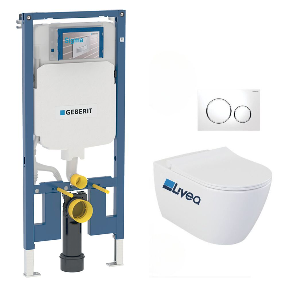 Pack WC Bati-support Geberit Duofix UP720 extra-plat + WC sans bride Livea Bello + Abattant softclose + Plaque blanche
