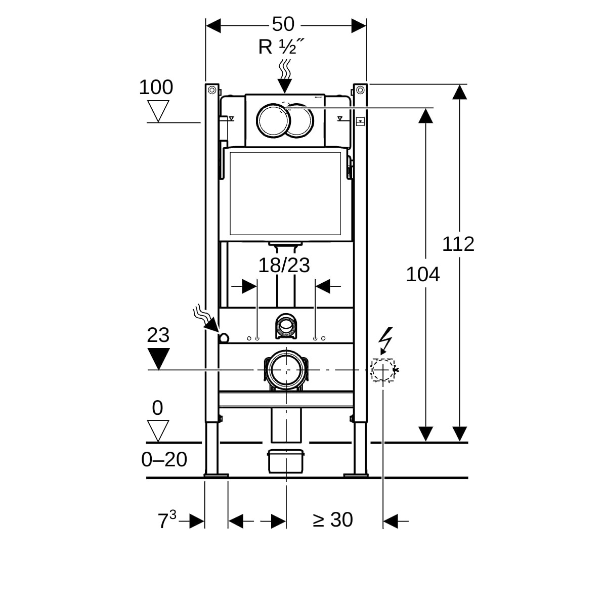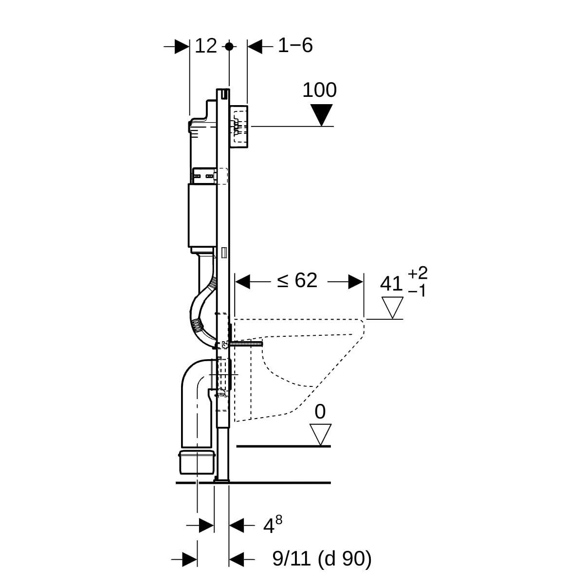 - Citerne affleurante Delta Geberit 12 cm (UP100) contrôle avant, contre la condensation