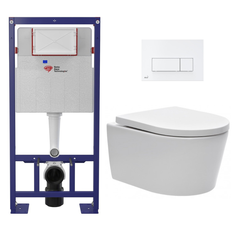 Swiss Aqua Technologies Pack WC bâti-autoportant + WC SAT sans bride fixations invisibles + Abattant softclose + Plaque blanche (SMART-SATrimless-M270)