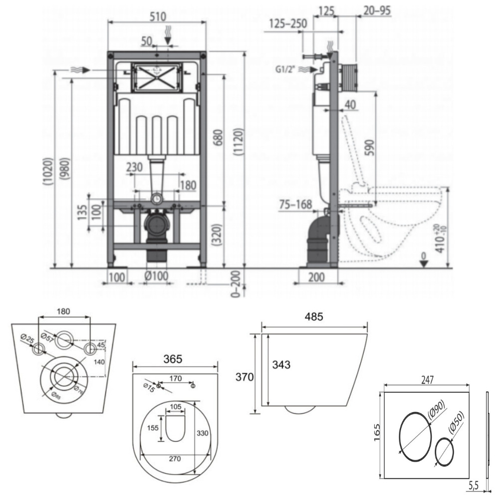 - Pour le montage de cuvettes WC suspendues avec un pas de raccordement de 180 mm ou 230 mm