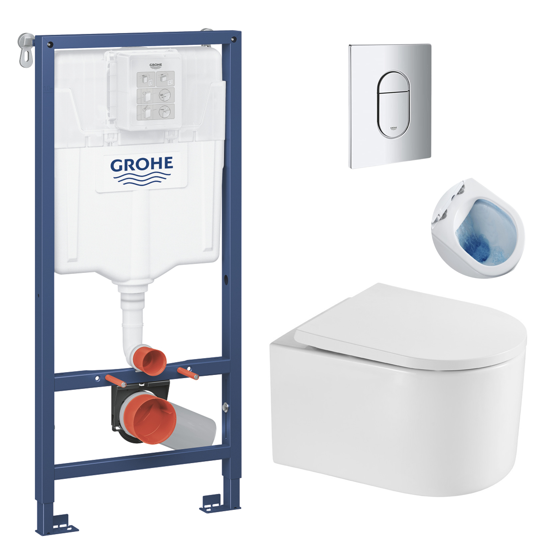 Grohe Pack WC Bâti-support + WC sans bride SAT Delano + Abattant softclose + Plaque Chrome