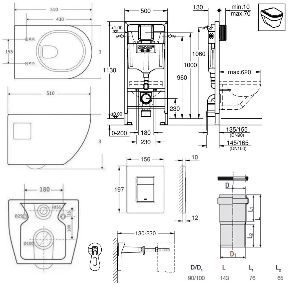 - Grohe Set Bati-support Rapid SL avec fixations murales et plaque de déclanchement noir mat (38811KF0)