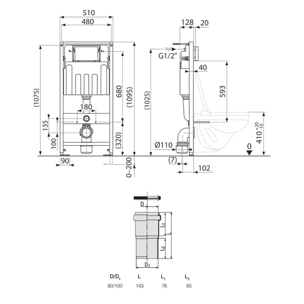Caractéristiques du Pack Bâti-support pour WC suspendu + plaque de déclenchement double touche blanche Villeroy & Boch Viconnect Pro (92214468) :