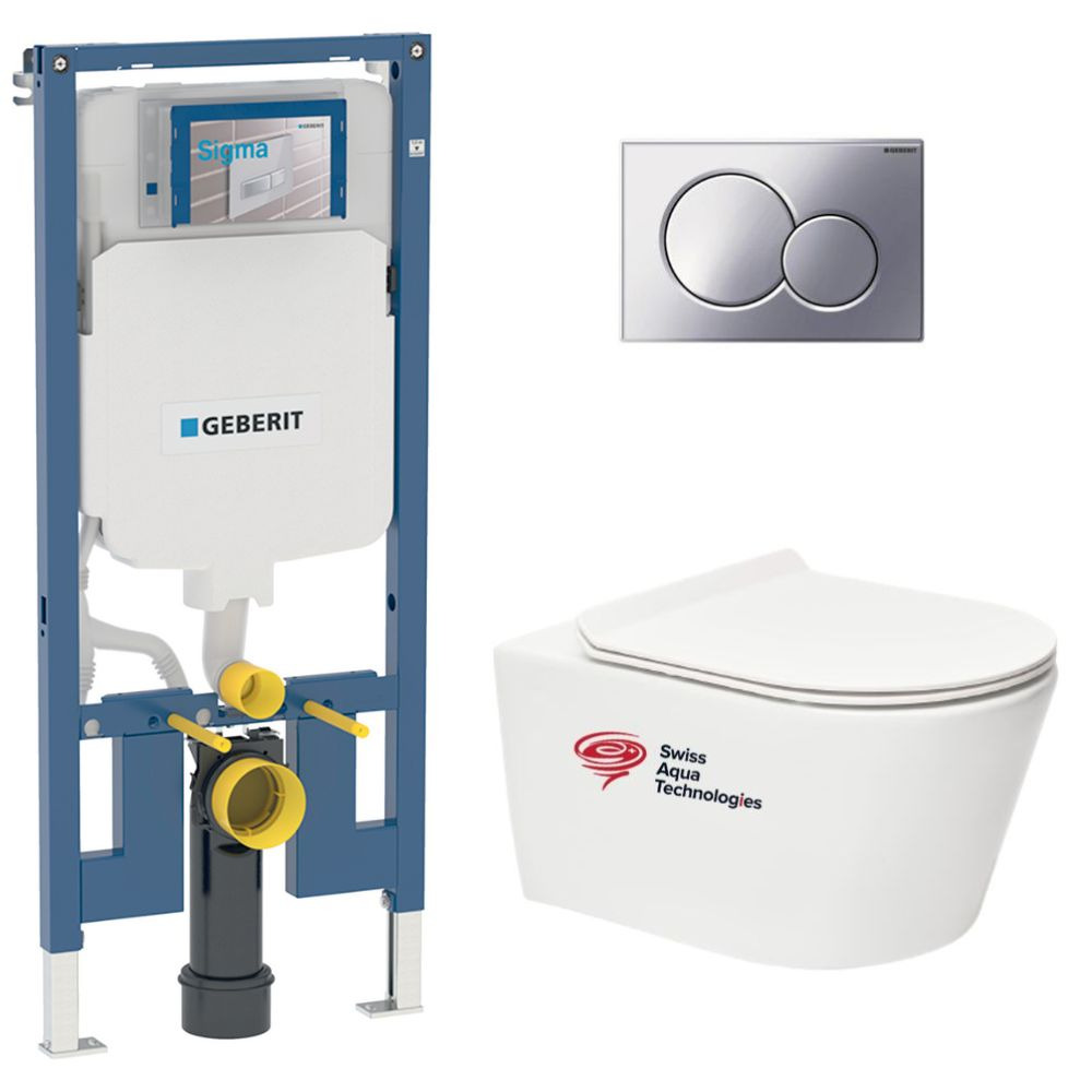 Caractéristiques du Pack Bâti-support Duofix extra-plat UP720 + WC sans bride Swiss Aqua Technologies + Abattant SoftClose + Plaque Chromé brillant (SLIM-Brevis-N) :