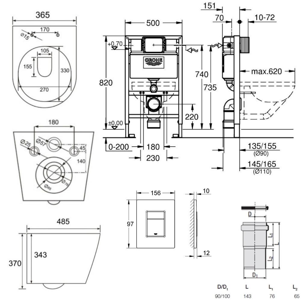 Complétez cet ensemble avec la plaque de commande double touche Grohe Even dotée de la technologie anti-empreintes, dans un fini noir mat (38966KF0), pour ajouter une touche de sophistication à votre salle de bain.