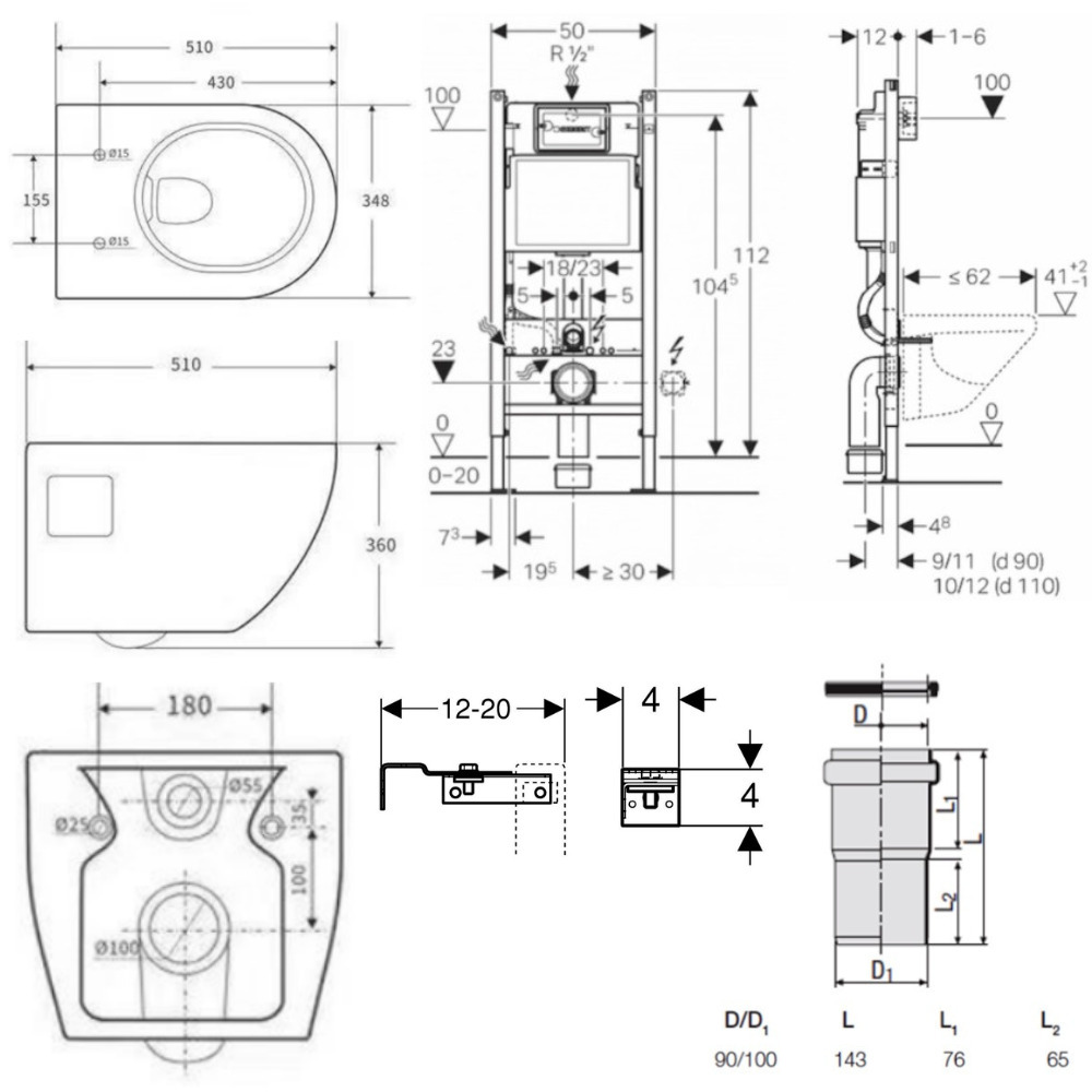 - Anticondensation, profondeur d'installation : 12 cm
