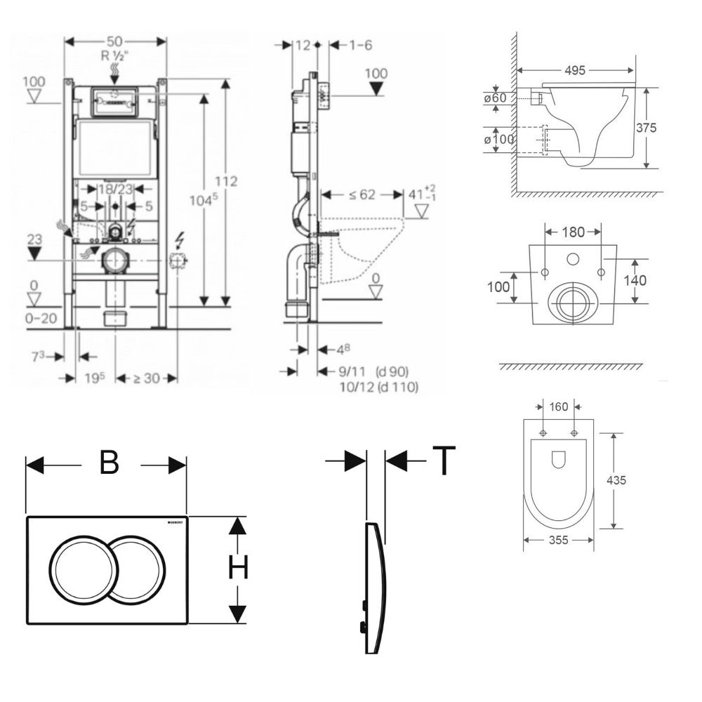 Caractéristiques du Geberit Delta Pack bâti-support Duofix 112cm + Plaque de commande Delta01, Blanche + Fixations murales (111.154.11.2) :