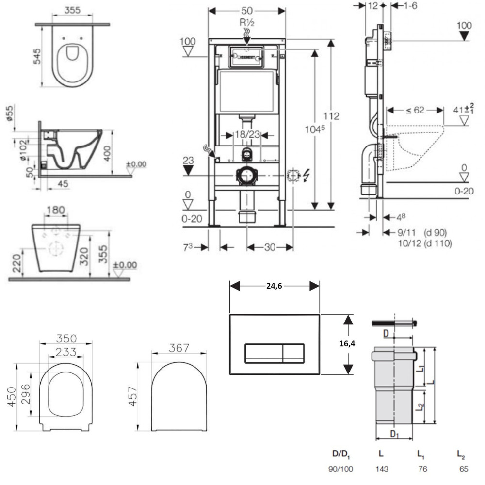 Caractéristiques du Pack bâti-support Geberit Duofix UP100 + WC sans bride Vitra Integra + Abattant SoftClose + Plaque Delta 50 Noir Mat (BlackIntegraGeb10) :