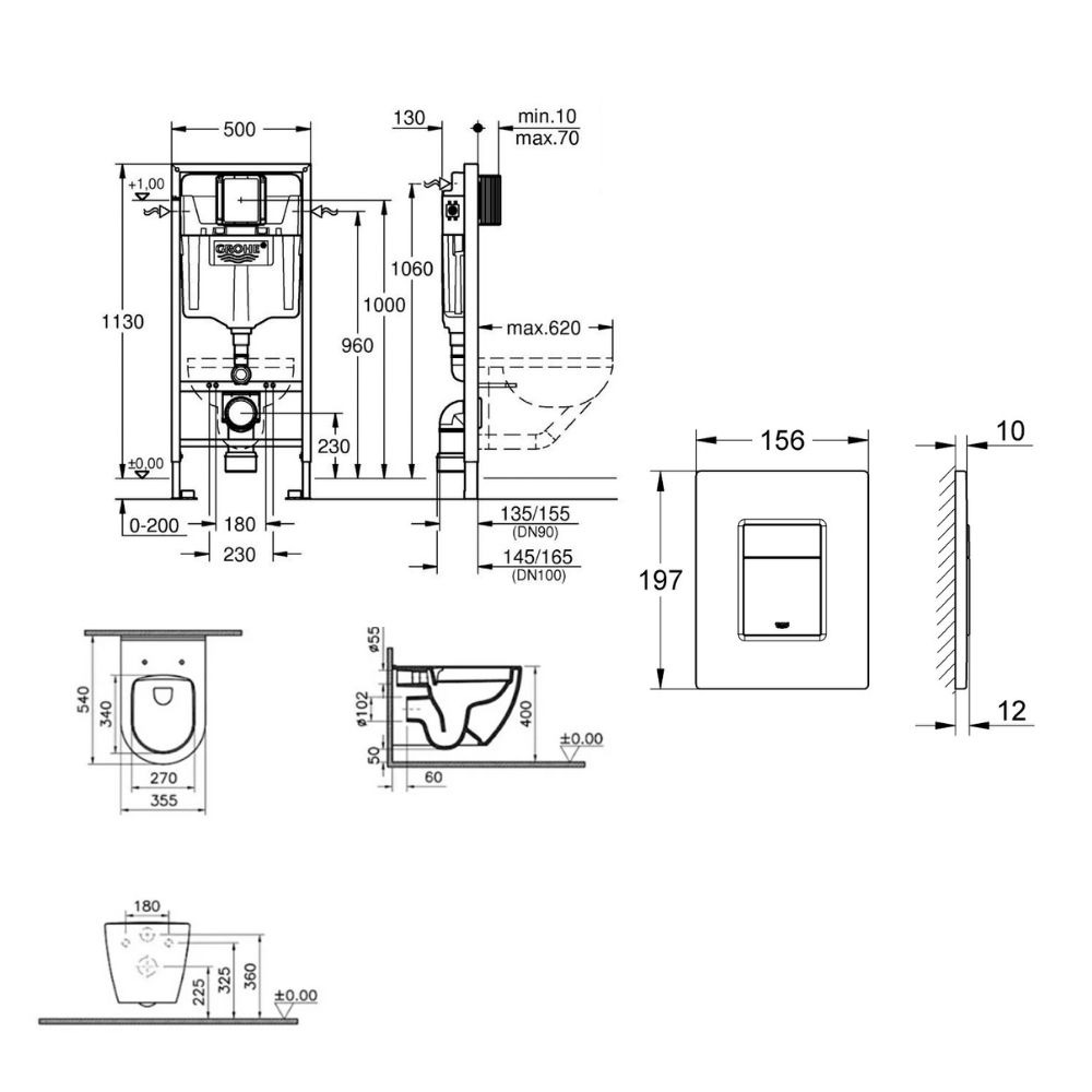 Caractéristiques du Set Bati-support Grohe Rapid SL avec fixations murales et plaque de déclenchement noir mat (38811KF0) :