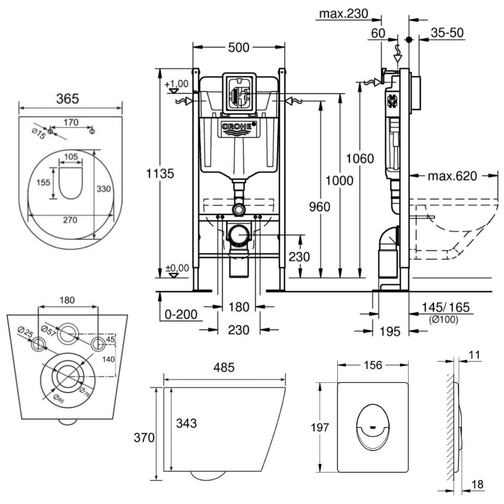 - Grohe RAPID SL Project bâti support autoportant pour WC, 1.13 M (39145000)