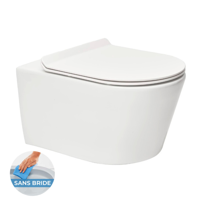 Brevis WC suspendu sans bride, fixations invisibles + abattant ultra-fin, softclose (SATBRE011RREXP)
