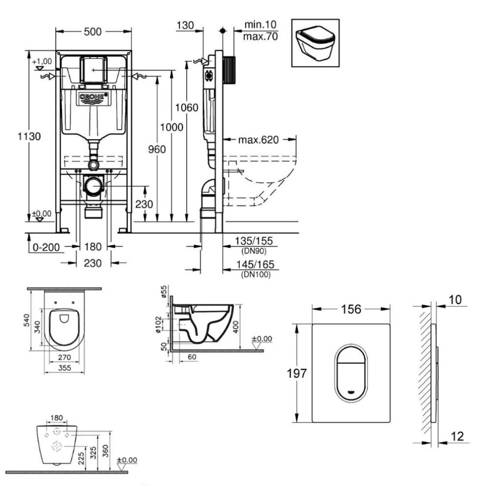 Grohe Pack Rapid sl+ plaque arena chrome+ Fixations murales + set d'isolation phonique + cuvette suspendue (ArenaS60)