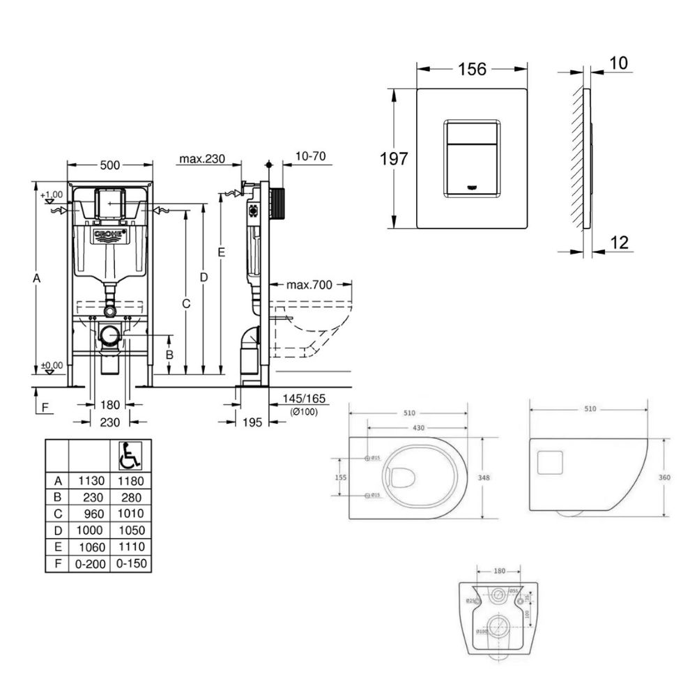 Grohe SOLIDO Pack Bâti-support + WC sans bride SAT + Abattant SoftClose + Plaque chrome+ Set d'habillage (AUTOPORTANT-PROJECT-1-SABO)