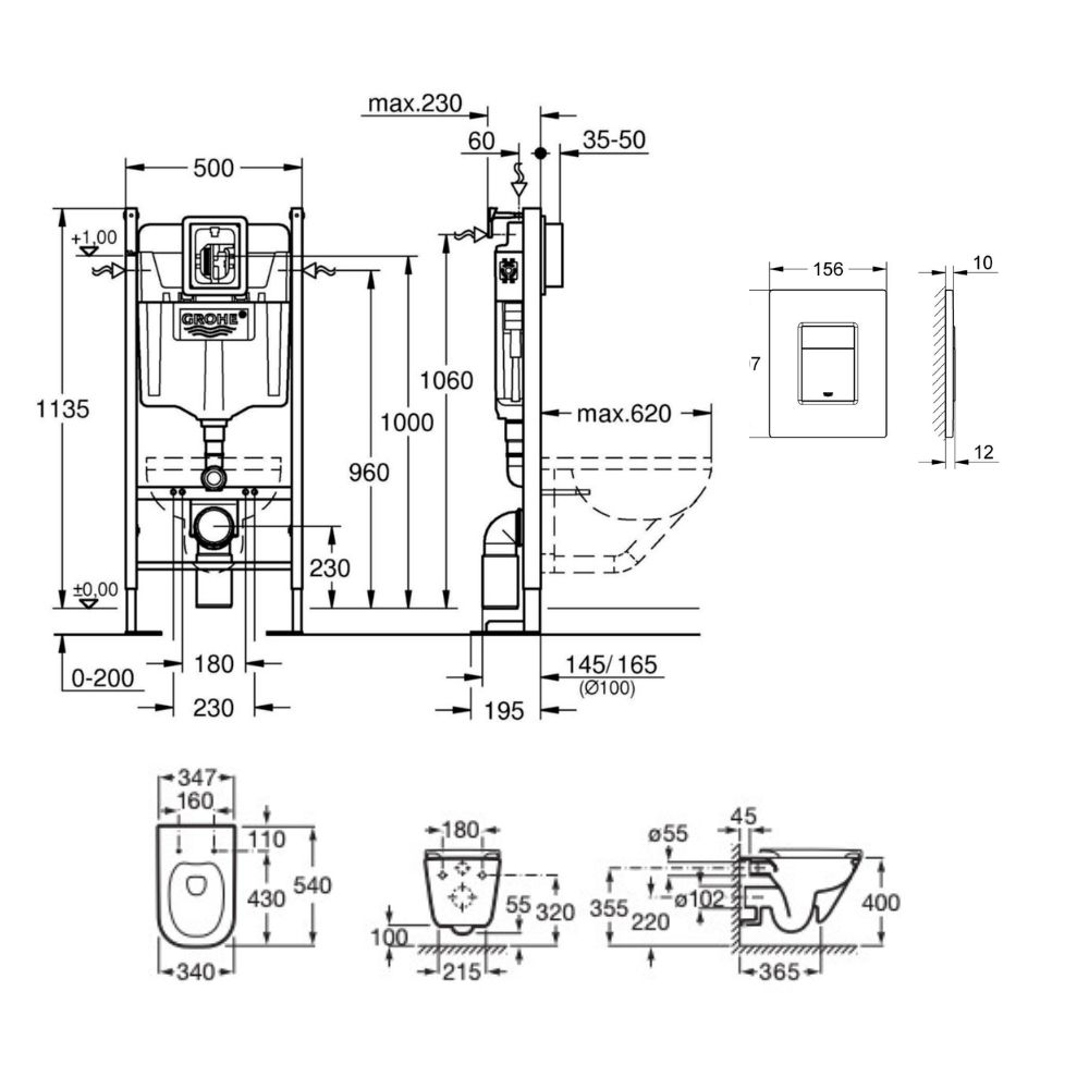 - Grohe RAPID SL Project bâti support autoportant pour WC, 1.13 M (39145000)