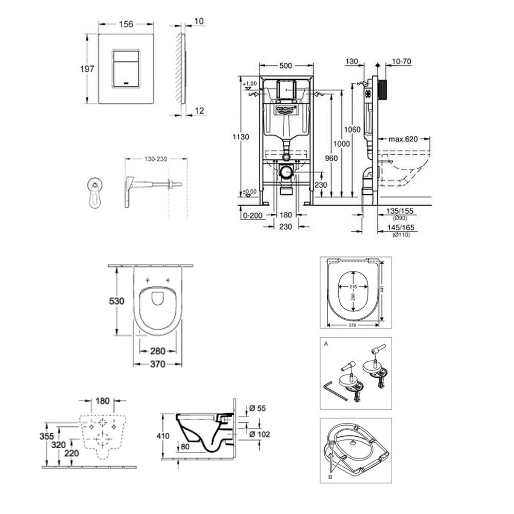 Grohe Rapid SL Pack Bâti-support + cuvette sans bride + Abattant + Plaque chrome (RAPIDSL-ARCHI4-1)