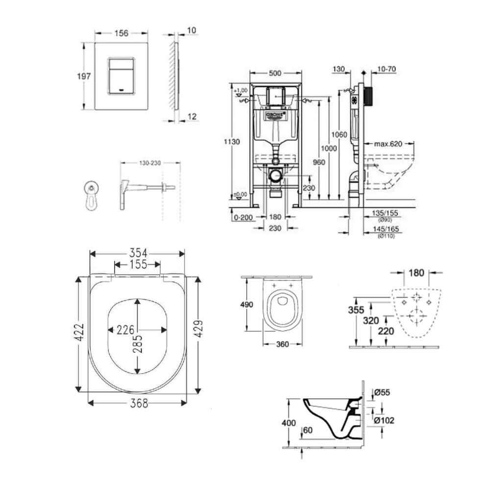 Grohe Rapid SL Pack Bâti-support + cuvette sans bride + Abattant + Plaque chrome (RAPIDSL-O.NOVO49-1)