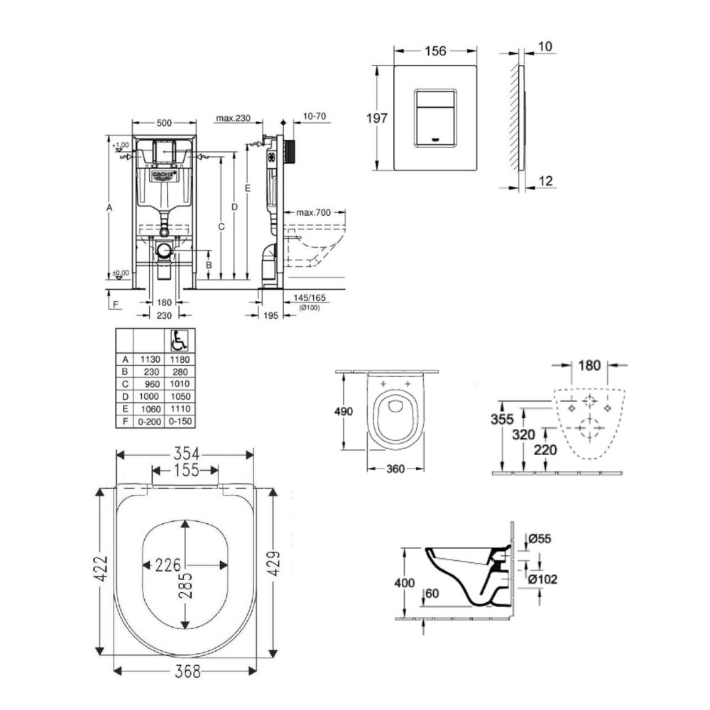Grohe SOLIDO Pack Bâti-support + Cuvette suspendue + Abattant + Plaque chrome (AUTOPORTANT-O.NOVO49-1)