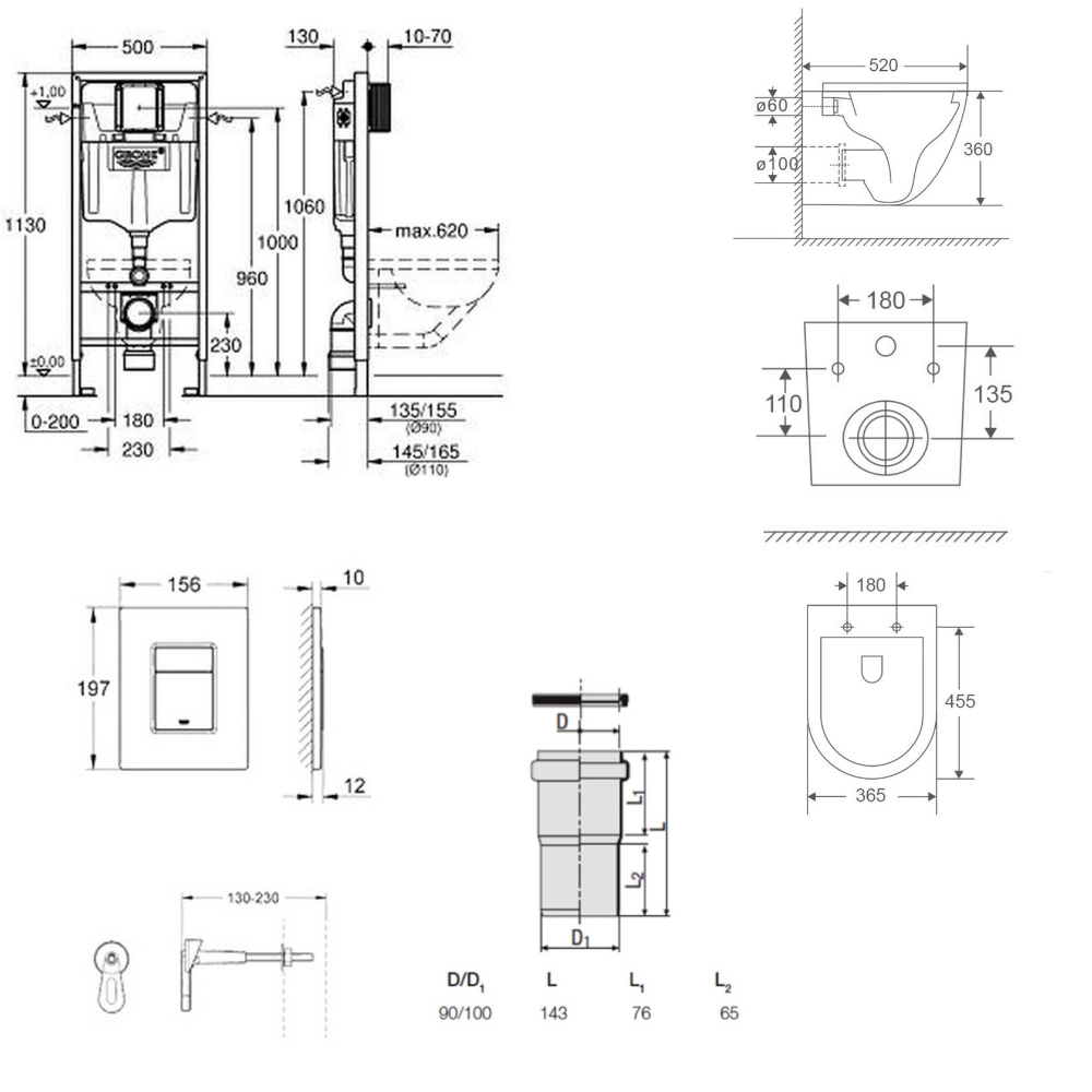 Caractéristiques du Set Bati-support Grohe Rapid SL (38811000) :