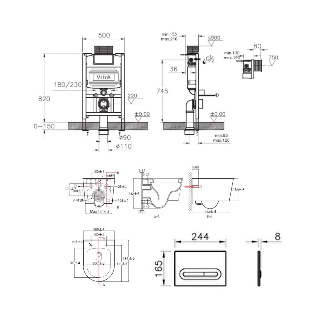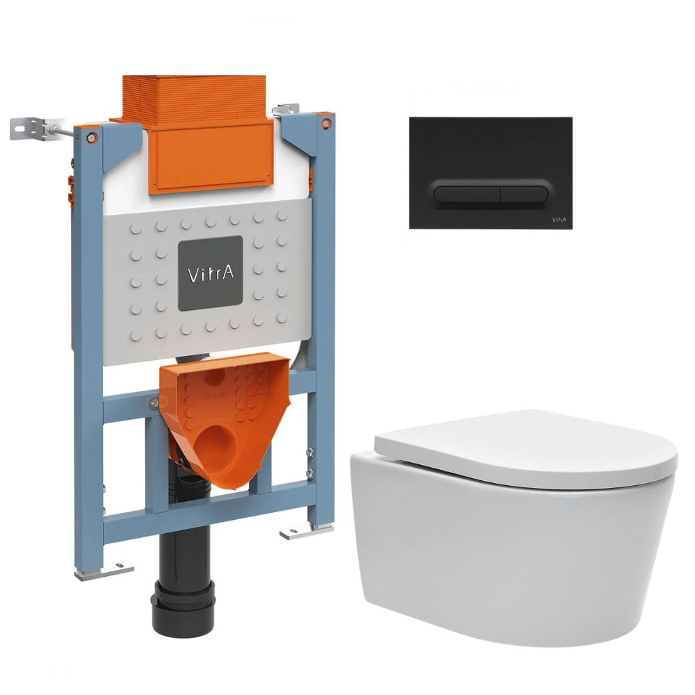 Vitra Bâti support 82cm + WC suspendu + Abattant softclose + Plaque noir (VUNI82SAT-6)