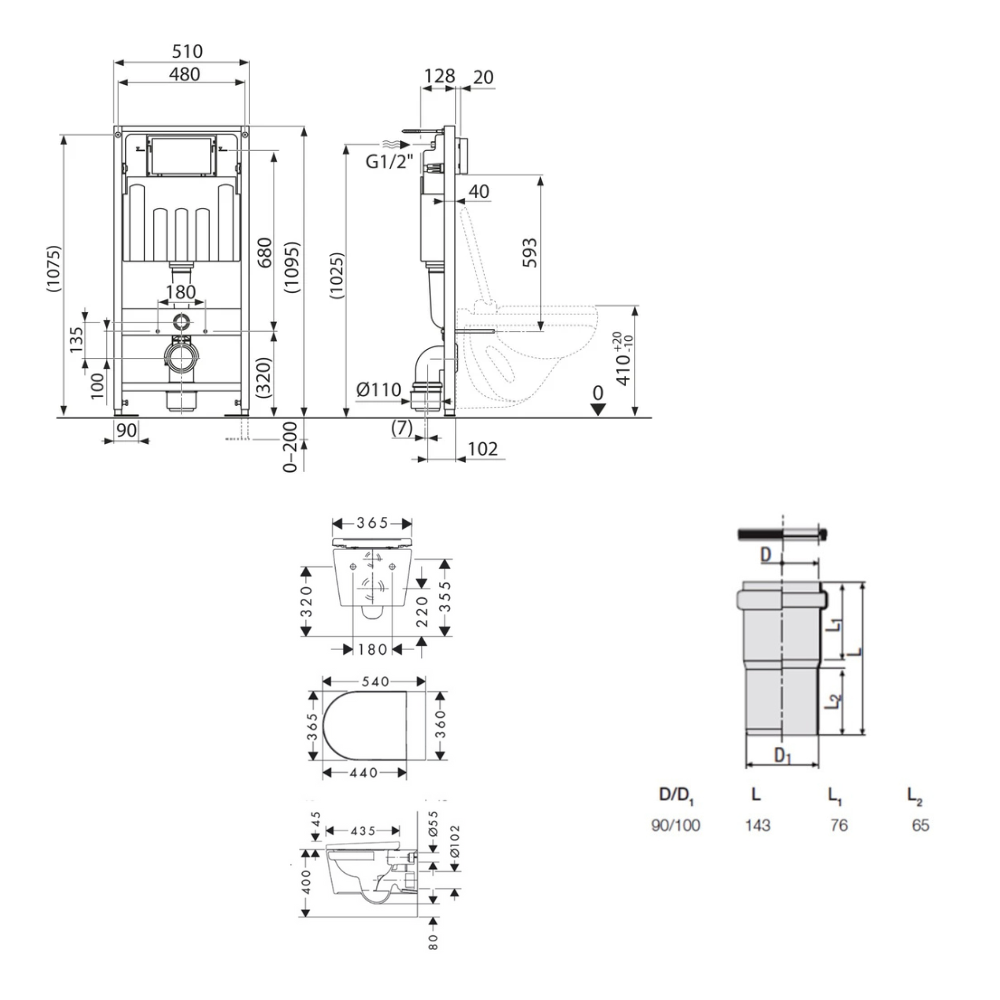 - Redi Manchon de raccordement Ø 90/100 MM pour Rapid SL ou Geberit (VS0564190)