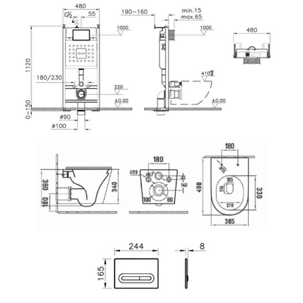 - V-Fix Core bâti support autoportant pour WC, 1.12 M (732-5800-01TF)