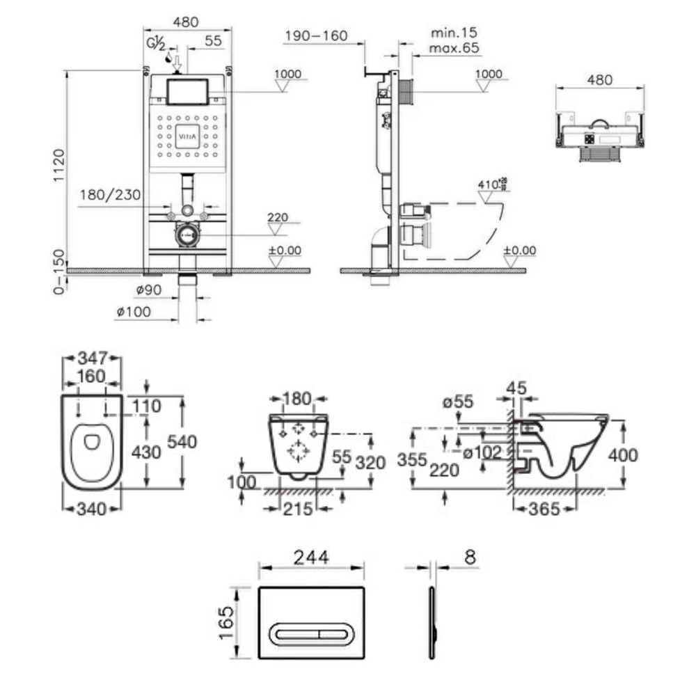 Vitra Pack WC Bâti autoportant V-Fix Core + WC sans bride Roca Gap + Abattant slim, SoftClose + Plaque chrome mat (VFTFGAP5)