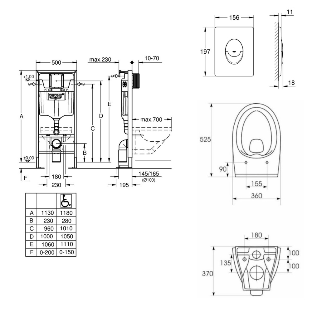 - Grohe SOLIDO Bâti-support autoportant pour WC, 1,13 M (39981000)
