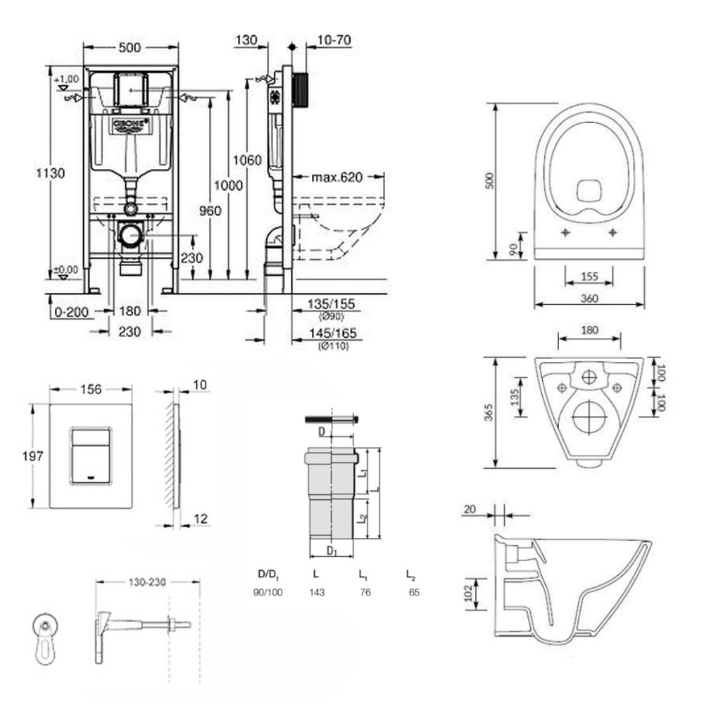Caractéristiques du pack WC Bâti-support Geberit 112 cm + Cuvette sans bride Cersanit + Abattant SoftClose + Plaque blanche (MILLEGEB1) :