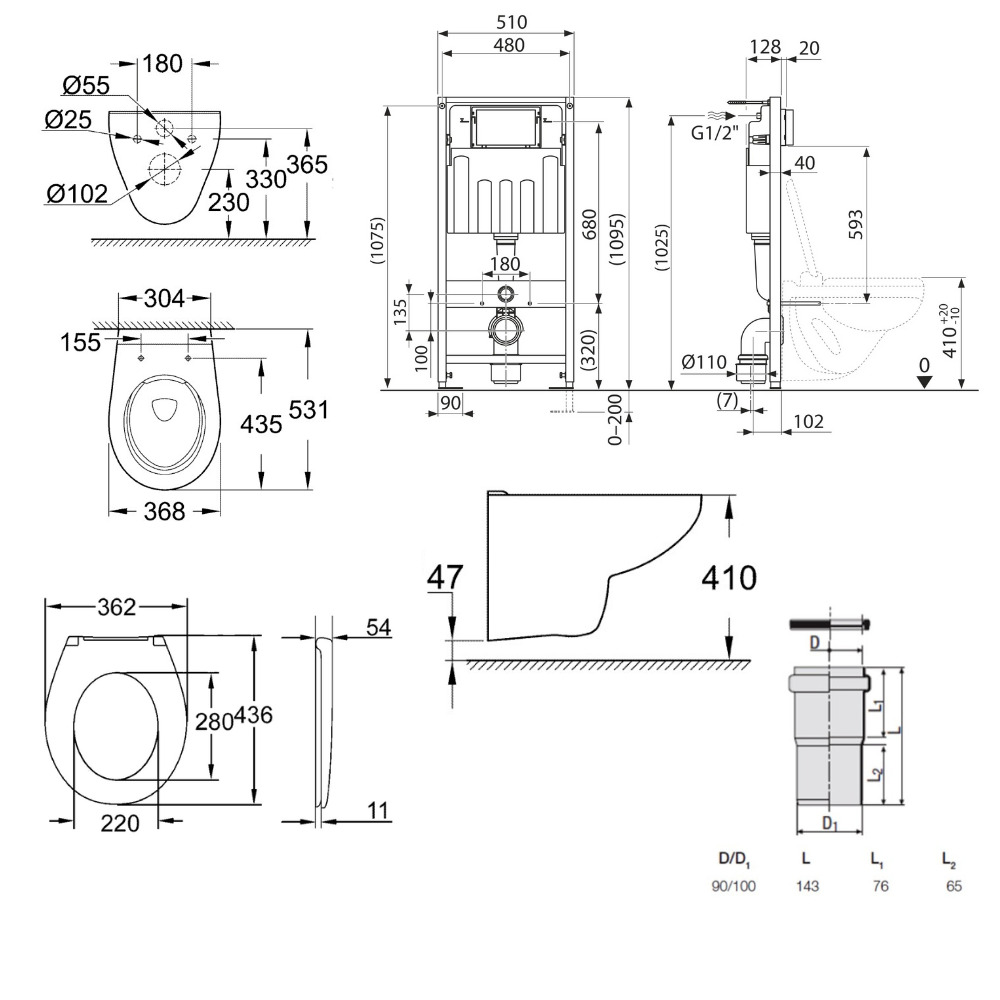 - Redi Manchon de raccordement Ø 90/100 MM pour Rapid SL ou Geberit (VS0564190)