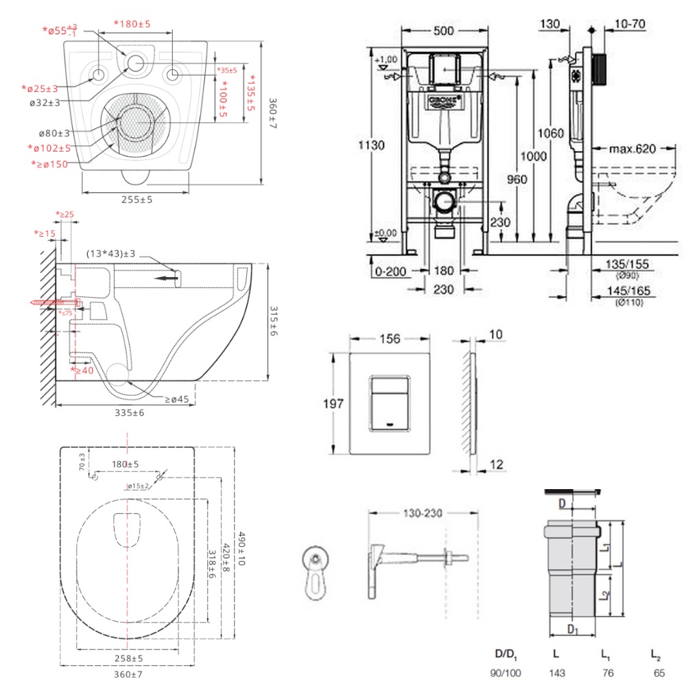 - Livré avec les tiges et écrous pour fixation de la cuvette WC, fixation céramique