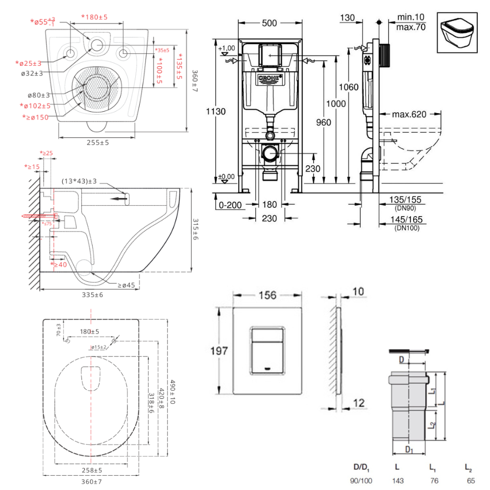 - Grohe Set Bâti-support Rapid SL avec fixations murales et plaque de déclenchement noir mat (38811KF0)