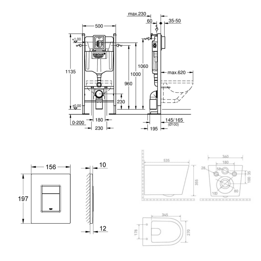 - Grohe RAPID SL Project bâti support autoportant pour WC, 1.13 M (39145000)