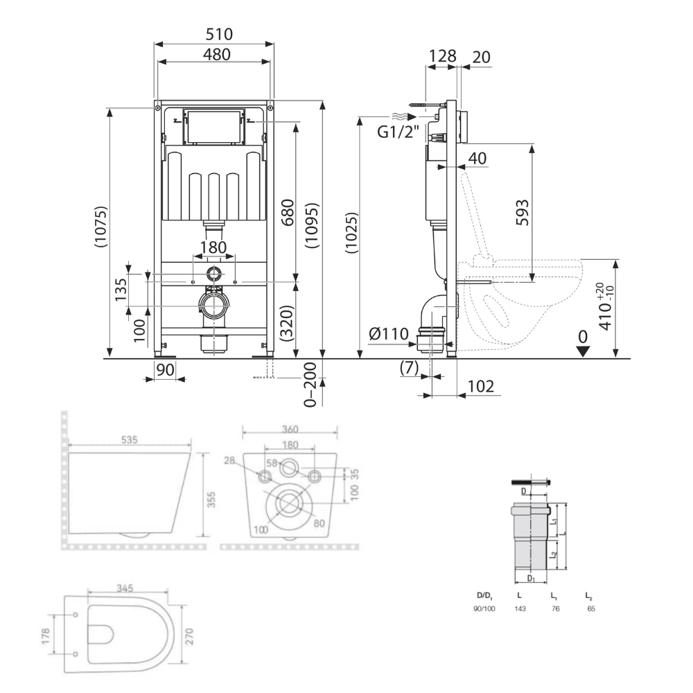 - Plage de réglage devant mur : 135-205mm (lorsque monté sur des supports muraux)