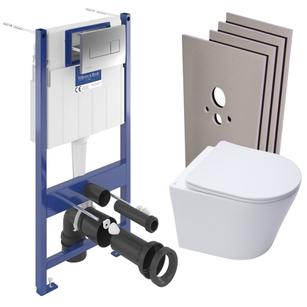 ViConnect Pro S Pack WC bâti Villeroy & Boch + abattant SoftClose + habillage + plaque (VCNINFI2CHSB)