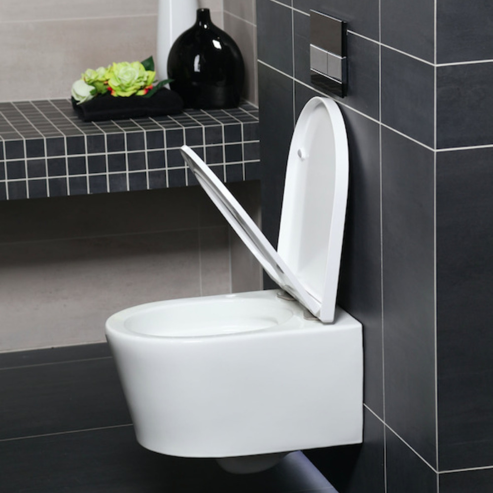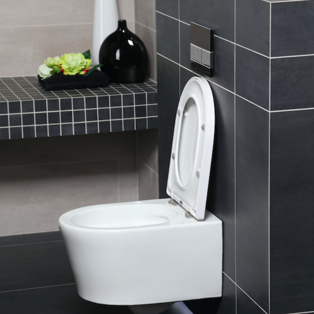 WC suspendu sans bride et fixations invisibles + abattant frein de chute (SATBRE010RREXP) :
