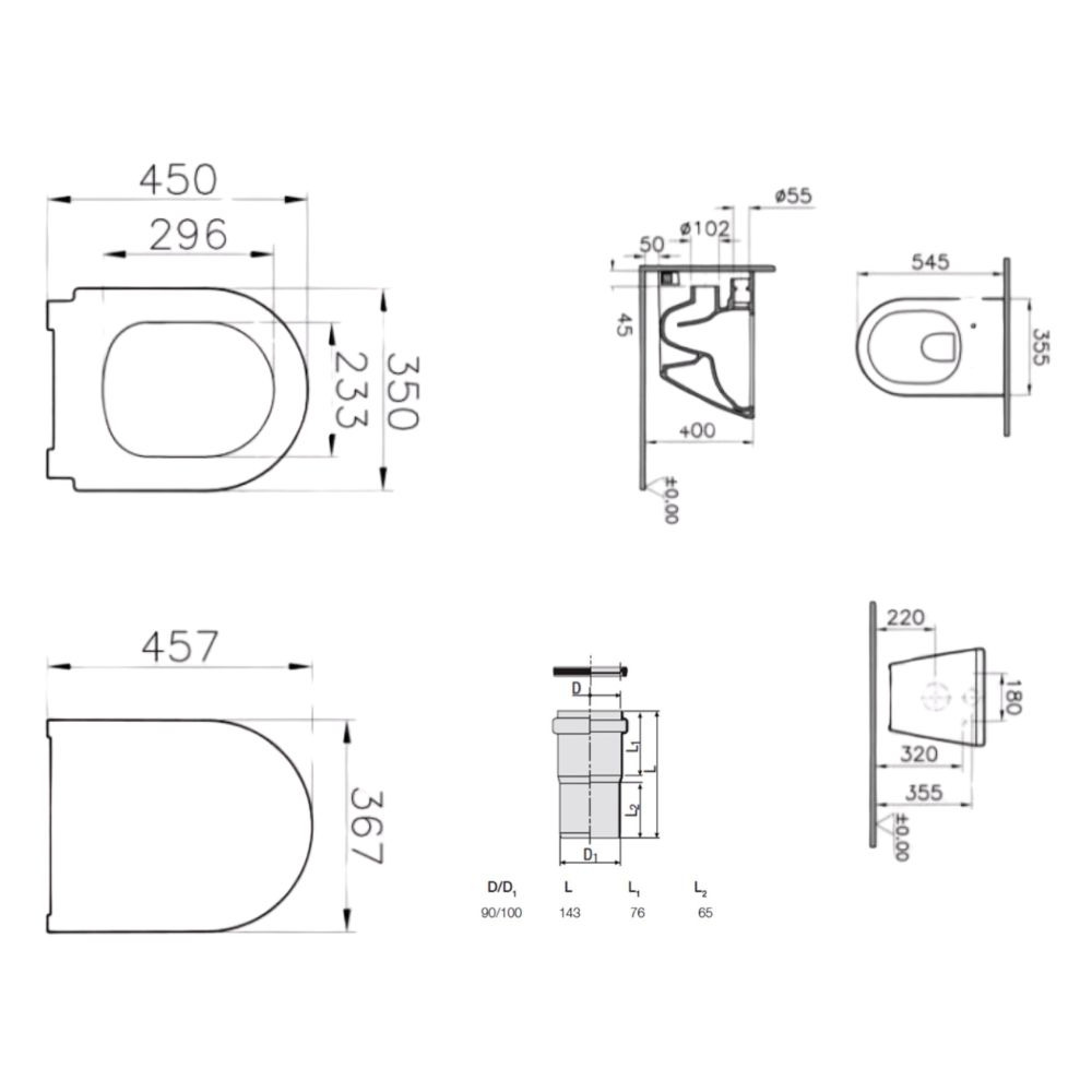 Caractéristiques du pack WC bâti-support sol-mur Villeroy & Boch ViConnect Pro S + WC suspendu sans bride Vitra + abattant SoftClose + plaque chromé (VCNINTEGRARS2CH) :