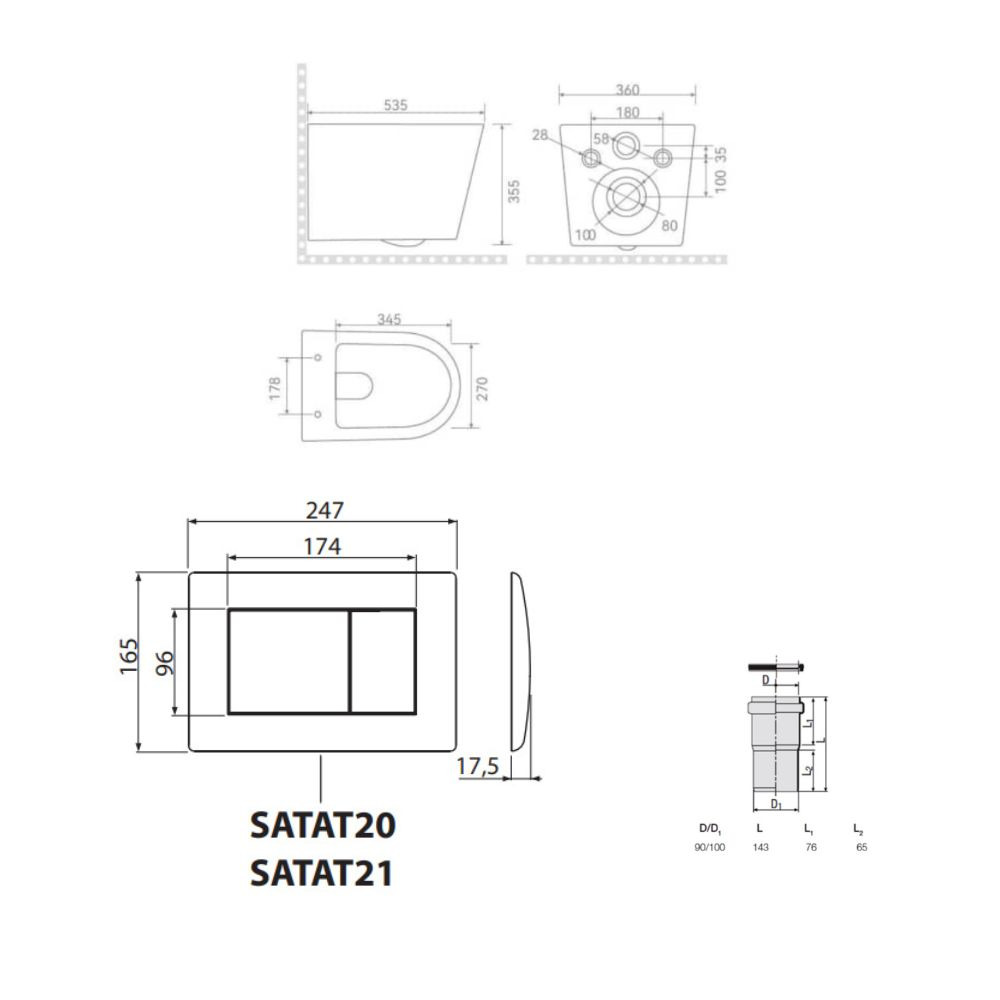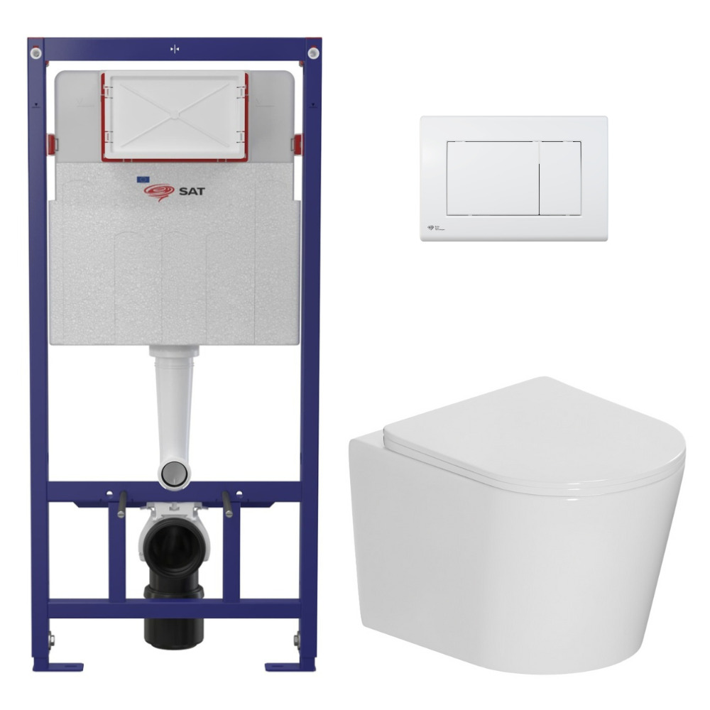 Caractéristiques du pack WC bâti-support léger 112 cm ECO 2L Swiss Aqua Technologies + WC suspendu sans bride Ceramia avec abattant SoftClose + plaque blanc brillant (STECE14WT01-FR)
