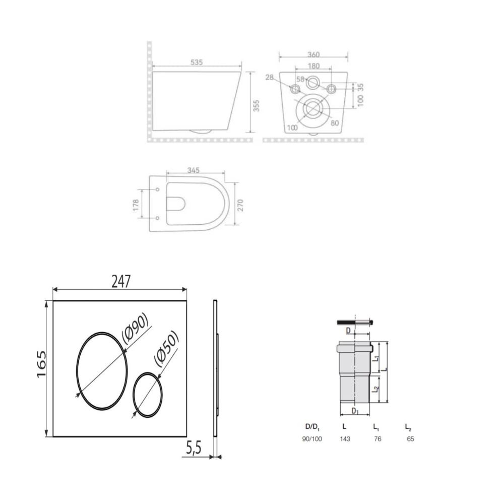 - Type de produit : ensemble WC suspendu sans bride + abattant SoftClose