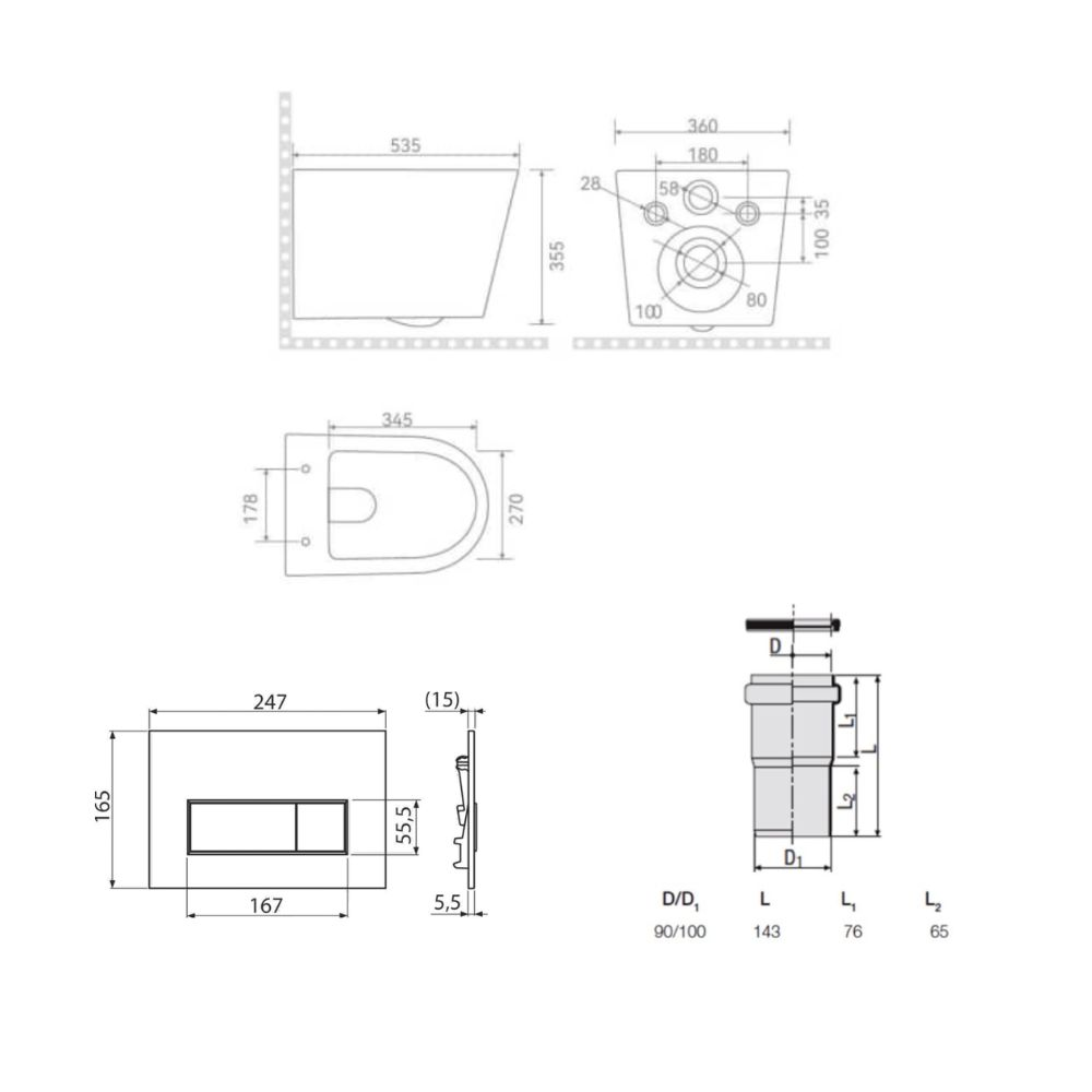 - Type de produit : ensemble WC suspendu sans bride + abattant SoftClose