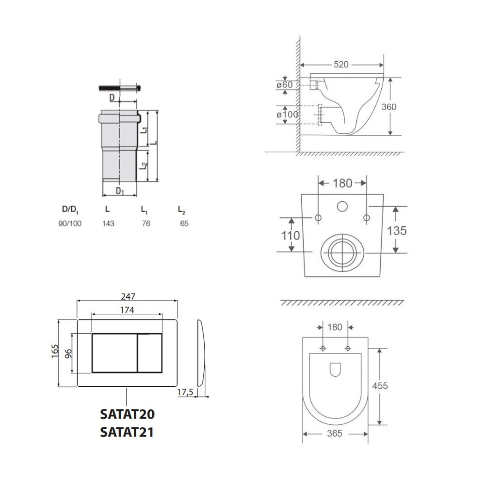 WC suspendu sans bride et fixations invisibles, abattant frein de chute (SAT67010RREXP) :