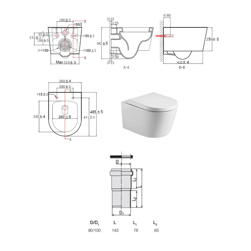 - Pour l’installation d’un WC suspendu avec un pas de raccordement de 180 mm ou 230 mm