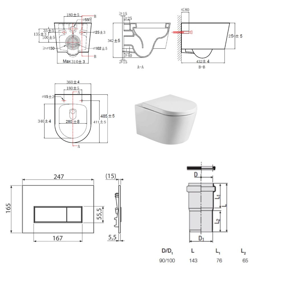 WC suspendu sans bride et fixations invisibles + abattant frein de chute (SATBRE010RREXP) :