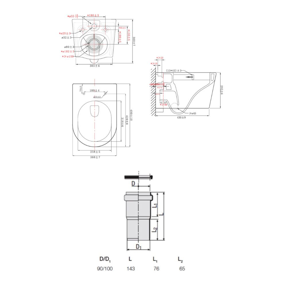 - Pour l’installation d’un WC suspendu avec un pas de raccordement de 180 mm ou 230 mm