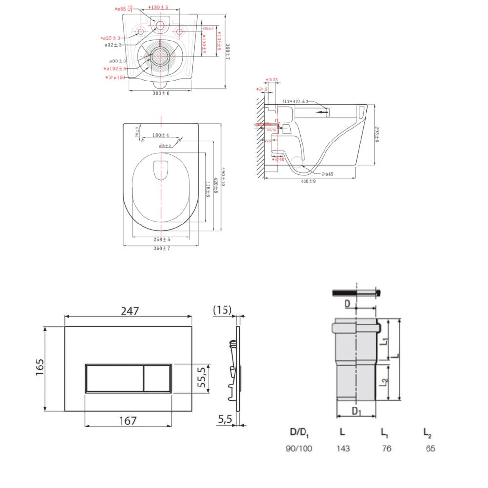 - Pour l’installation d’un WC suspendu avec un pas de raccordement de 180 mm ou 230 mm