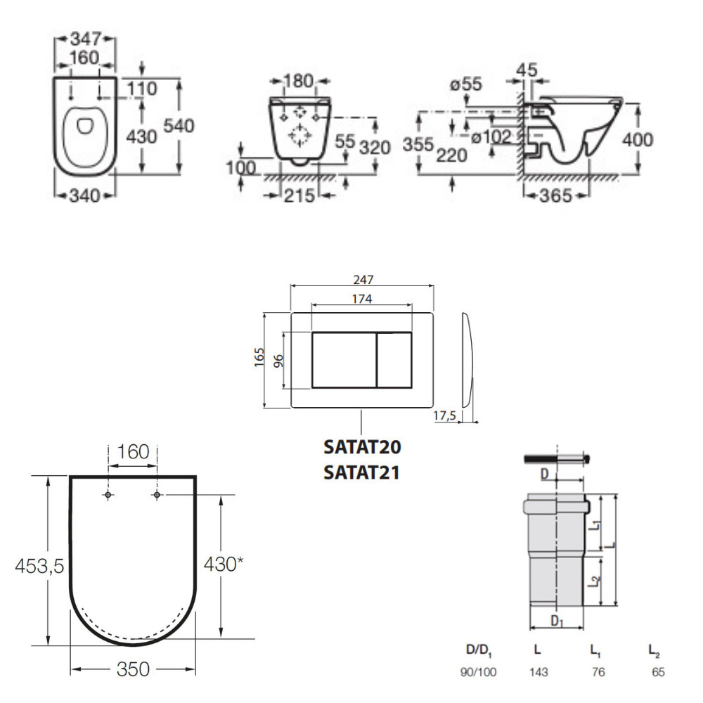 Caractéristiques du pack WC bâti-support ECO 2L Swiss Aqua Technologies + WC suspendu avec abattant SoftClose Roca + plaque blanche (STEROGAWR01-FR) :