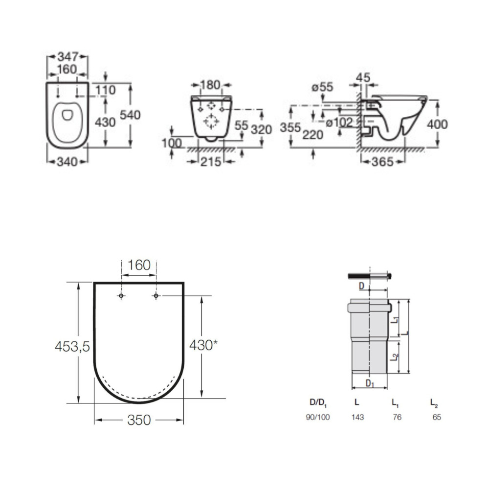 - Roca Cuvette WC suspendue en céramique sans bride Rimless (A34647L000)