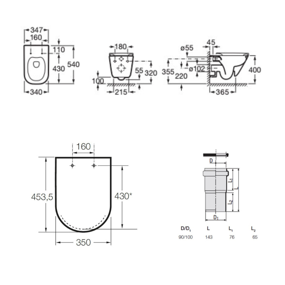- Roca Cuvette WC suspendue en céramique sans bride Rimless (A34647L000)