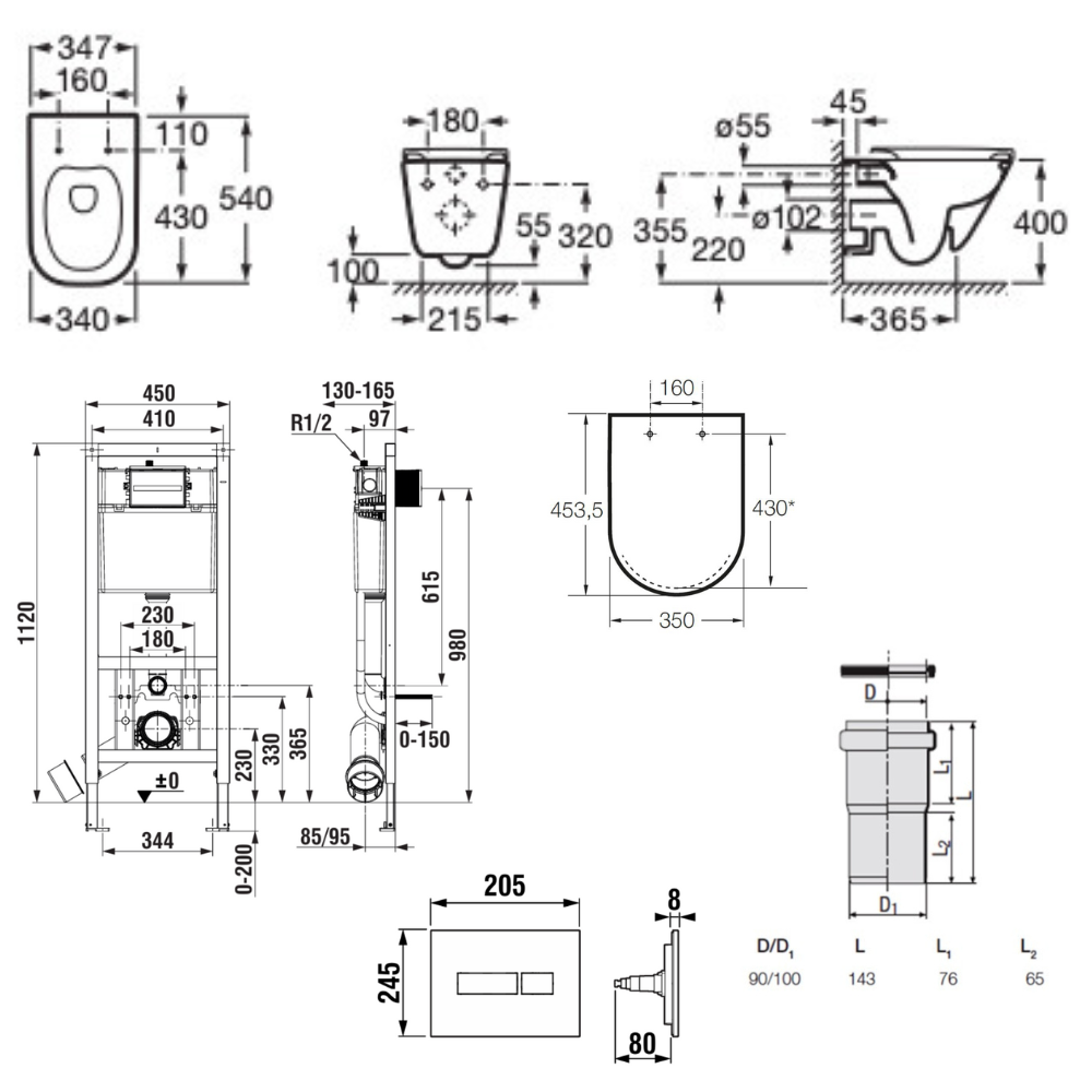 Bâti-support encastrable pour WC suspendu, installation sur cloison légère, hauteur 112 cm, chasse 2/4-6 L (A8900200Z0) :